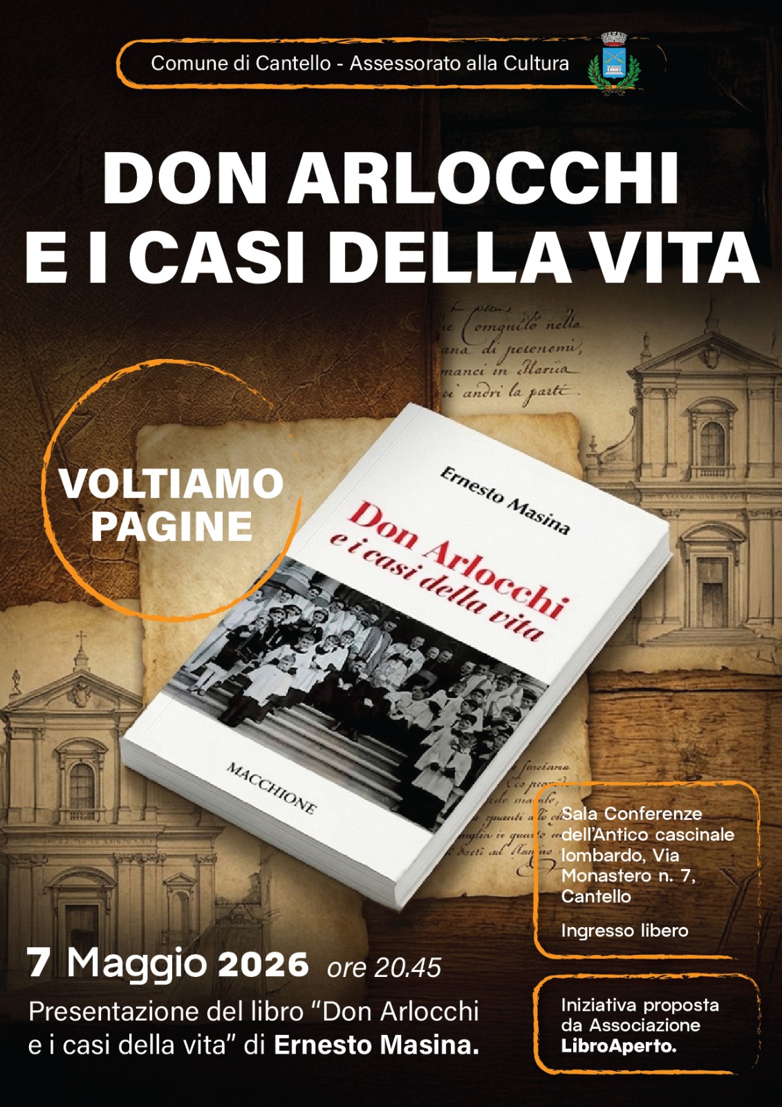 Giovedì 7 maggio 2026, alle 20.45, nella Sala Conferenze dell’Antico Cascinale Lombardo in via Monastero 7 a Cantello, sarà presentato il libro “Don Arlocchi e i casi della vita” di Ernesto Masina.